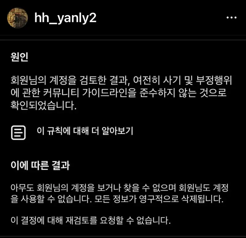 메타가 사진 작가 양리 씨(hh_yanly2)의 인스타그램 계정을 삭제한 것입니다. (새 계정 팔로우)