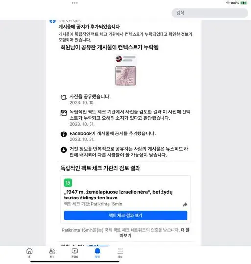 이스라엘의 팔레스타인 폭격 영상이라는 게시물에 있는 여러 영상 중 하나가 이번 폭격이 아니라 몇 년 전 폭격 영상이라며 허위 사실이라고 게시물을 차단하거나, 1947년 팔레스타인 지방 지도에 이스라엘이 표시돼 있지 않다는 게시물이 오해의 소지가 있다며 차단한 것(당시 이스라엘은 국제 연맹으로부터 건국 허락을 받아 두었다며) 말입니다. (이것은 가짜뉴스를 검증한답시고 제휴를 맺은 소위 “독립적인 팩트 체크 기관”의 이름을 빌어 자행된 검열입니다.)